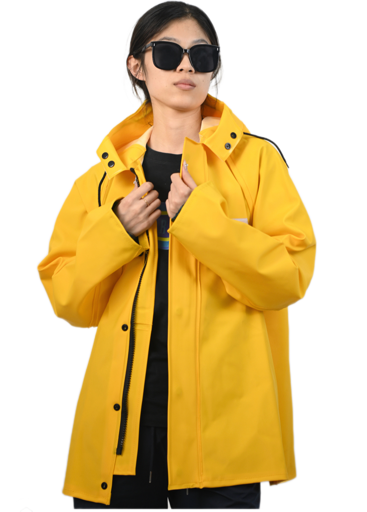 Bright yellow color, soft fabric, 100% waterproof effect, suitable for every beautiful lady working at sea, a wide brim can shield from both the wind and the hot sun